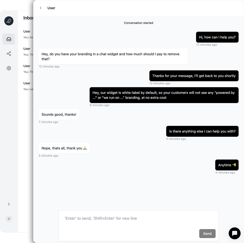 Clean, customizable chat widget for your customers and a powerful web app for your team to manage everything.